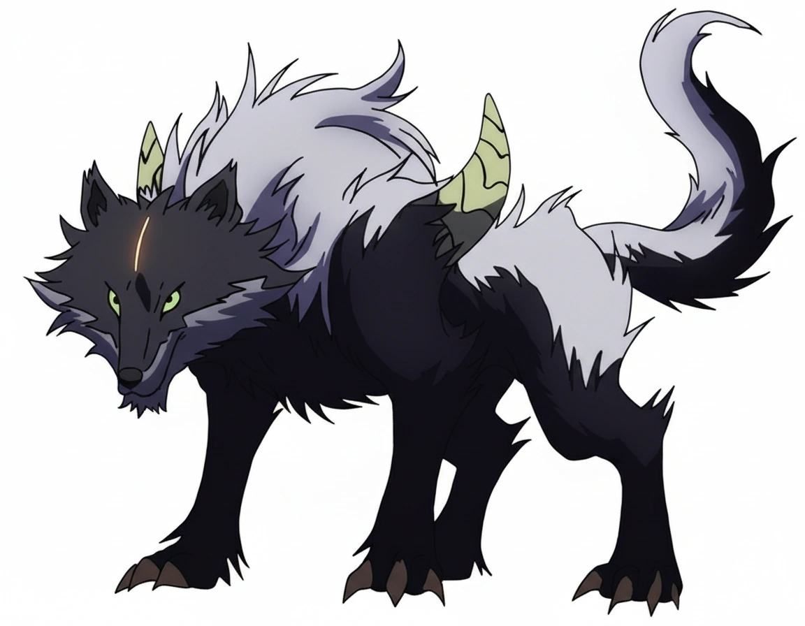 In the anime, Fenrir's fur was a greyish blue and he had two large yellow horns coming out of his shoulders.